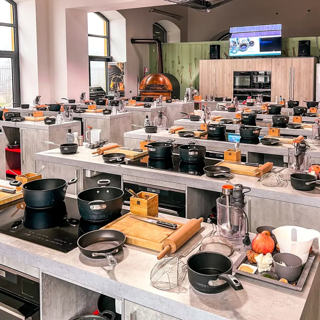 Ogni postazione dei partecipanti è progettata per offrire un'esperienza culinaria completa. Avrai accesso ad un moderno piano cottura e una gamma di attrezzi specializzati per garantirti di mettere in pratica tutte le tecniche con precisione.